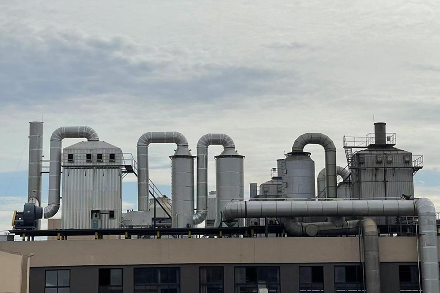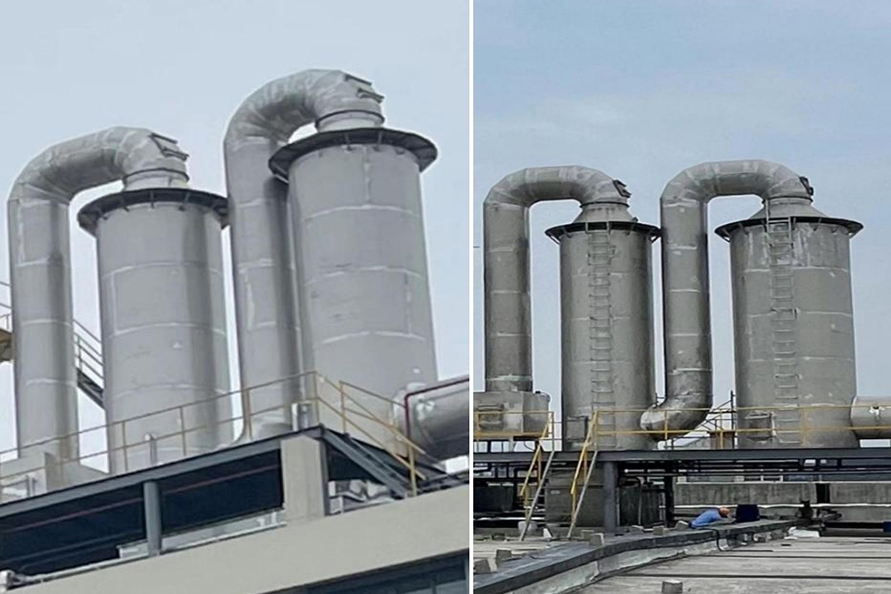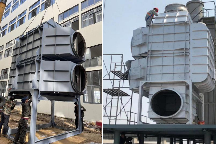 在磷化工、石墨、有色冶煉等行業(yè),生產排放的飽和濕煙氣與低溫環(huán)境空氣接觸時,在煙氣溫度下降過程中,煙氣中的水蒸氣過飽和凝結,凝結水滴折射和散射光線,使煙羽呈白色或灰色,稱為濕煙羽。由于冬季溫度較低,相關問題的環(huán)保投訴較多。那么,有哪些種煙氣脫白技術?各種煙氣脫白的技術原理是怎樣的?1、冷凝相變煙氣脫白技術冷凝相變煙氣脫白原理為:煙氣經濕法脫硫后,含濕量上升,為B狀態(tài),進入換熱消霧模塊后。干態(tài)空氣A入換熱消霧模塊兩者交換后,A溫度上升,含濕量不變,相對濕度降低,處于C。B煙氣,溫度降低,相對濕度不變,含濕量降低,液滴析出,轉為D。D和受熱C流出換熱消零模塊,在氣室中混合,使D溫度下降,濕度降低:C溫度上升,相對濕度上升,兩種狀態(tài)的煙氣混合,最終達到F狀態(tài),AF連線始終處于不飽和狀態(tài),因此,不會出現(xiàn)可見白煙或霧氣團。可以看出,冷凝混風技術是煙氣脫白的較好技術路線,特別是在北方寒冷地區(qū),單純的煙氣再熱很難消除煙囪白煙。2、低電耗離子束煙氣脫白技術低電耗離子束煙氣脫白原理為:高速電子射流擊穿煙氣,產生正負離子體基團,煙氣中氣溶膠、飽和水滴、微小顆粒物在離子束的撞擊下,不斷發(fā)生凝聚效應,顆粒物和水滴快速凝聚成團,在重力作用下,落到離子束除變器底部流入脫硫塔或廢水收集池,達到降解顆粒物,氣溶膠和水零的目的。廢氣中的氨氧化物,由高速電子束提供能量,快速與氨氣發(fā)生還原反應,生成副產物水。低電耗離子束煙氣脫白優(yōu)點:1.放電產生的離子體中,電子能量高,幾乎可以和所有的惡臭氣體分子作用。2.反應快,不受氣速限制。采用防腐蝕材料。3.用電成本低,操作極為簡單,無需派專職人員看守,基本不占用人工費。4.設備啟動、停止十分迅速,隨用隨開,不受氣溫的影響。